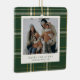 Classic Green Plaid Family 4 Photo Holiday Ceramic Ornament