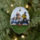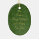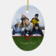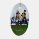 This oval shaped ceramic ornament has a classic green swirl design with a red ribbon and bow on the front. You can easily add your family photograph at the top. On the bottom, you can personalise this with your family name. On the backside, you can customise this with a greeting and the year.