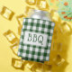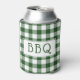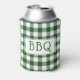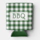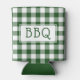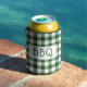 Keep your drinks cool in style at a barbecue with can coolers featuring a classic dark green and white buffalo check plaid with the letters BBQ in a white rectangle on each side.
