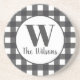 Classic Grey White Buffalo Plaid Monogram Coaster
