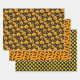 This custom set of wrapping paper sheets features classic Halloween motifs including jack o lanterns, pats and candy corn in classic orange and black Halloween colours. Perfect to wrap gifts for an October birthday for fan of Halloween and spooky season.