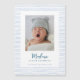Nestled within an organically hand-drawn blue striped border, your precious newborn's photo takes centre stage, surrounded by the warmth of tradition and the promise of new beginnings. The soft, gentle hues of the blue stripes exude a sense of calm and growth, symbolising the fresh chapter in your family's story.
