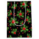 Classic Holiday Green Holly Red Berries Pattern Medium Gift Bag