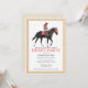 Host a refined race day celebration with this classic derby party invitation featuring an elegant horse and jockey illustration. Ideal for horse racing parties, derby watch gatherings, and timeless spring events.