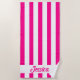 Classic Hot Pink and White Cabana Strip Beach Towel