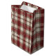 Classic Ivory Brown Rust Red Plaid Pattern Medium Gift Bag