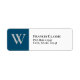 Classic left aligned monogram return address labels. Large gray monogram on a blue left border with classic block text on a white background.