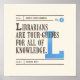 A library quote by Patrick Ness: "Librarians are tour-guides for all of knowledge." It's a part of a series of quotes about libraries and librarians, inspired by a classic book title design. Original design by Piotr Kowalczyk © First published: 19.01.2022.