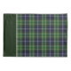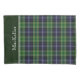 Stylish plaid pillow case with the traditional blue, green, yellow, black, and white clan MacKellar Tartan pattern. A green and white hem, on the end of the case, has white custom text, on the front of the pillow. Personalise the text to read what you want.