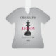 Chess Master with King Drawing Shirt Shaped Christmas Ornament. Colour of Text for Name can be changed in "Edit Design". Chess piece drawing by Claudine Boerner. Copyright (c) 2023 Claudine Boerner and its licensors. All rights reserved.