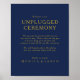 This classic minimal navy blue gold unplugged ceremony poster is great for a simple modern romantic and elegant wedding. The dark navy blue color palette and minimal vintage typography give it a classy chic formal touch. The design is flexible, perfect for a basic contemporary evening, spring, fall, summer, or winter wedding. Keep it as is, or choose to personalize it with artwork or graphics of your choice.