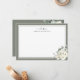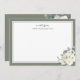 This modern elegant personalized note card features beautiful watercolor ivory flowers with an olive green border.