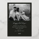 Classic minimalist two-sided family photo Christmas cards featuring gold foil frame on dark colour background with personalised family photo and holiday messages.