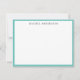 Classic minimalist single border note card in teal blue. The note card can be personalised with the inclusion of a name.