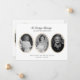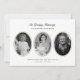 Classic photo memorial card with pale gold accents is a timeless and elegant way to honor the life of a loved one and announce their passing. This two-sided death announcement card features three oval photo spaces on the front, perfect for showcasing treasured memories. It includes space for the full name, dates of birth and passing, and a brief tribute. The reverse side offers an additional photo alongside a personalized death notice with space for memorial service details, surviving family members, and optional donation information. The clean white background, refined serif fonts, and subtle gold framing give this card a sophisticated and respectful look, ideal for mailing to family and friends or handing out at a memorial or celebration of life. Designed for ease of customization, this obituary card provides a meaningful way to preserve and share a beautiful legacy. Available as printed cards or an instant digital download.