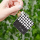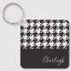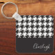 Classic Modern Black and White Houndstooth Name Key Ring