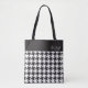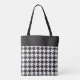 This design features a classic black and white houndstooth pattern. Combined with your own personalised text, this composition creates a modern chic and unique all-over-print tote bag.