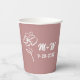 Bride and Groom Initials Floral Design Wedding Guest dusty rose pink paper cups