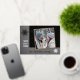 Unique, classic, trendy, pretty and decorative Holiday card. Cute WITH LOVE FROM text and room to customise or personalise with a photo and names (or family name) of your choice on cute fun scattered snowflakes pattern design on a chic black and grey background. And a customisable season greeting poem on the backside of the card.