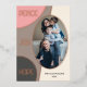 Unique, classic, trendy, pretty and decorative Holiday card. With classy PEACE HOPE JOY text, and room to customise or personalise with a family name or individual names, and a photo of your choice on dusty blush pink, dark grey and taupe beige brown coloured real rose gold foil circles pattern.