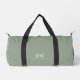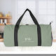 This stylish, modern personalised duffel bag features a classic serif monogram and sans serif name in white on a sage green background.