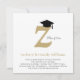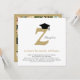 This classic and simple gold and white graduation party invitation card design features a bold monogram letter 'z' of the graduate with a mortar board / graduation cap as an accent.