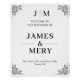 This personalized wedding welcome sign will make a stunning first impression. The tone for a celebration characterized by classic elegance and journalistic flair is established by the first thing your guests see. To add visual appeal, the design makes excellent use of typography and traditional borders. The bold, bold serif font of your couple's names draws attention and gives the sign a sense of grandeur and significance. The welcome message and wedding date are displayed in a delicate, exquisite italic serif, which contrasts with this strength and adds a touch of romantic movement and elegance. It's the ideal way to welcome your loved ones at the reception foyer or ceremony entry, ensuring a flawless event.