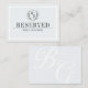 Have a custom med RESERVED sign for your extra special guest at the honorary table with these place cards. Minimalist simple place card with an elegant monogram crest: Vintage-inspired line art monogram crest with elegant typography. Back is a simple monogram in white on light frost white background, understated elegance with this very chic light grey.