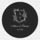 Elegant black and white floral monogram crest wedding classic envelope seal sticker.