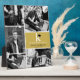 Classic White Monogram With Black Mortarboard On Gold Colour Block, Five Multi Photo Collage Modern Graduation Easel Plaque.