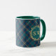 Classic Monogram Gold Wreath Green Tartan Plaid Mug
