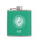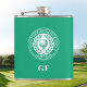Create your own golf flask with monogrammed initials. A classic design featuring a victory laurel wreath, framing a golf ball and tee. This editable template can be customised for a golf club, country club, company name, team player, golf club member or individual golfer. Perfect for commemorating special days, corporate events, competitions, tournaments and more. Printing colours: green and white. Explore the online collection for matching printed designs!