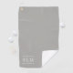A simple monogram is featured on this grey golf towel. Easily update the text with your initials, name or company name for a personalised golf towel great for tournament and tradeshow give aways.