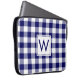 Classic Monogram Navy Blue Gingham Plaid Pattern Laptop Sleeve