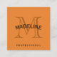 Classic Monogram Orange with Arc Text Square Business Card