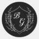 Classic monogram wedding crest black and white round sticker