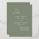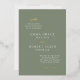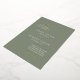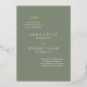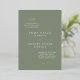 Elegant wedding invitation featuring a simple, minimal typographic design. Accents words are in a script typography, printed in real foil and the layout is offset for a modern touch. The template features text on the back for an all in one invitation, or you may delete the text to leave the back blank. The background colour is deep sage green and you may change the background colour or change all of the text on the front to foil in the design editing tool. This design is great whether you are having an informal or formal wedding.