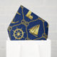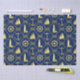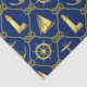 This classic nautical design features Gold nautical elements, lighthouse, ship’s wheel, anchor, and sailboat, framed by gold rope with nautical knots against a navy blue background.