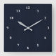 Classic Navy Blue Bamboo Wood Grain Look Square Wall Clock