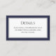 Classic navy blue Details enclosure card. Classic block text within a navy blue and grey border. Navy blue back.