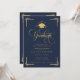 Classic Navy Blue Gold Photo Graduation Invitation