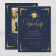 Celebrate a remarkable academic milestone with this classic navy blue and gold graduation invitation, designed with timeless elegance and formal sophistication. Featuring ornate gold script typography, decorative corner accents, and a graduation cap emblem, this invitation makes a striking statement for a high school or college graduate.