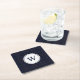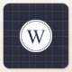 Classic Navy Blue Plaid Christmas Monogram Square Paper Coaster