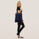 Navy blue tartan plaid tote bag. Featuring a classic crisscross of deep navy and subtle gold accents, this sheet evokes cozy winter nights and fireside traditions. The rich palette and tailored pattern bring a refined, preppy touch to holiday decor.