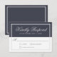 Timeless and elegant, this tasteful wedding RSVP card design features the trendy colour palette of classic navy blue and white with light silver grey lettering. The type face is crisp and classic with a lovely layout. A matching double line offset border frames your text to finish the design with style. Personalise the text template with your required response date.