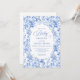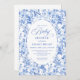 Create a timeless first impression with this baby shower invitation featuring elegant French toile de jouy roses in refined shades of navy blue, royal blue, dusty blue, and deep blue, inspired by classic chinoiserie floral design. This sophisticated style blends heritage elegance with modern charm, making it perfect for a memorable baby shower celebration.
