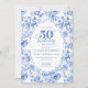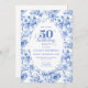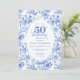 Classic Navy Blue Toile Roses 50th Birthday Invite
