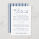Share important wedding information with this classic navy blue wedding details card, designed for formal and traditional ceremonies. This refined wedding insert features elegant calligraphy script paired with serif lettering for a layout that is easy for guests to read. The navy blue color creates a timeless, polished look, while the coordinating navy and white stripe pattern on the back adds a subtle, heritage-inspired finishing touch. Ideal for including accommodations, reception information, wedding website details, or attire notes, this wedding information card is well-suited for estate weddings, church ceremonies, and classic celebrations. Personalize the wording to create a cohesive details card that complements a timeless wedding invitation suite.