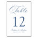 Guide guests to their seats with this classic navy blue calligraphy wedding table number card, featuring a timeless and formal design. “Table” is written in graceful navy calligraphy, paired with a centered table number in serif typography for a structured, easy-to-read layout. Personalize the card with your names and wedding date below the number to create a cohesive reception detail that coordinates with your wedding stationery suite. The design is printed on both sides for a refined, finished look. Perfect for traditional ceremonies, church weddings, and elegant reception venues, this table number card offers a polished way to complete your table décor. This card measures 3.5"x5". Edit each table number individually and add them to your cart to ensure a smooth ordering process.