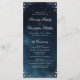 This elegant wedding program cards features traditional flourish corner and classic script on moody navy blue watercolor background, great for classic wedding, vintage wedding.